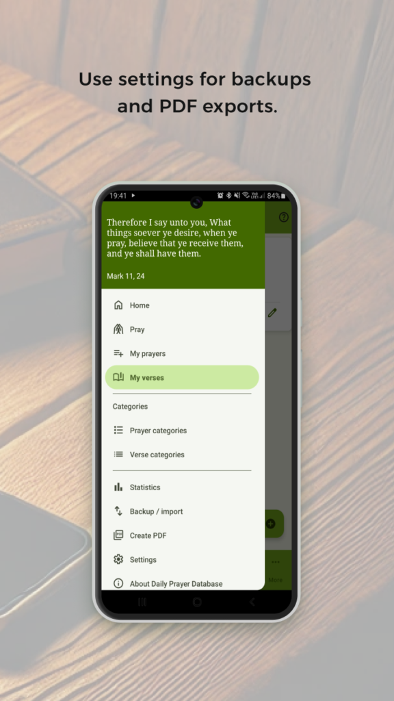 If you have any questions or ideas about the App, write me at: info@daily-prayer-database.com